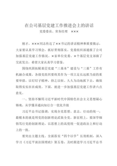 / 党建原创:20250096 在公司基层党建工作推进会上的讲话