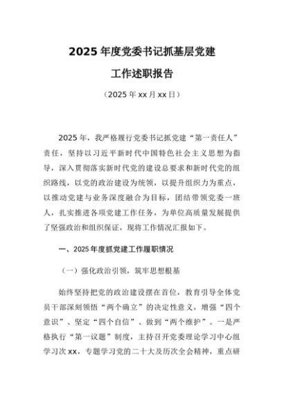 / 党建原创:20250104 2025年度党委书记抓基层党建工作情况报告
