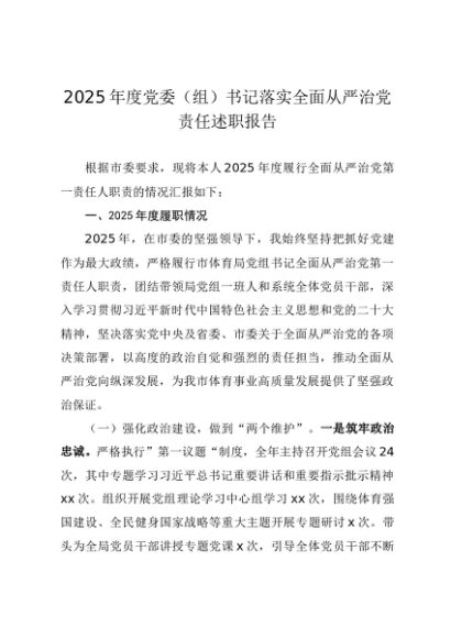 / 党建原创:20250110 2025年度党委书记落实全面从严治党责任述职报告