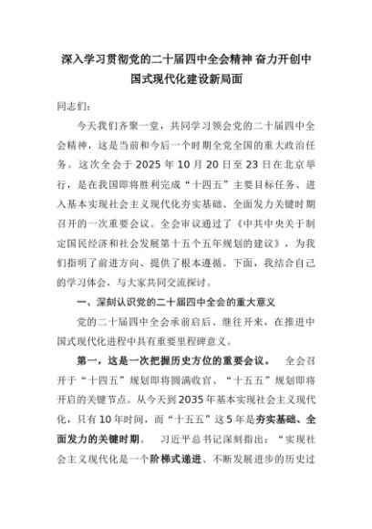/ 党建原创:20250111 党的二十届四中全会宣讲提纲