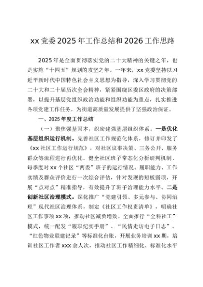 党建原创:20250117 XX党委2025年度工作总结与2026年工作思路