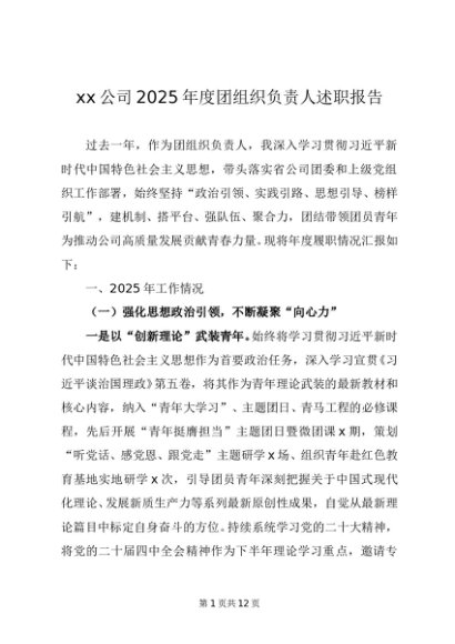 / 党建原创:20250121 xx公司团组织书记2025年度述职报告