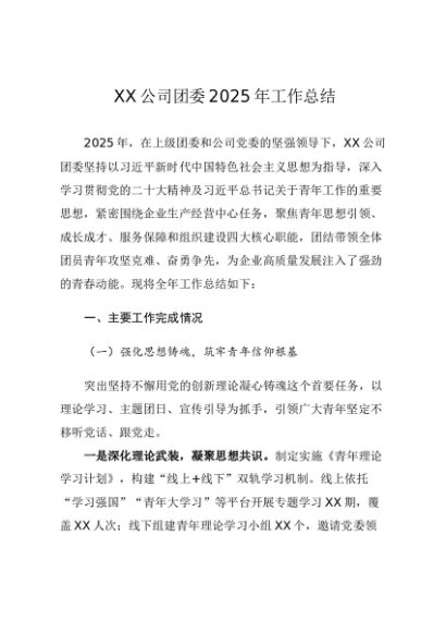 / 党建原创:20250123 XX公司团委2025年工作总结