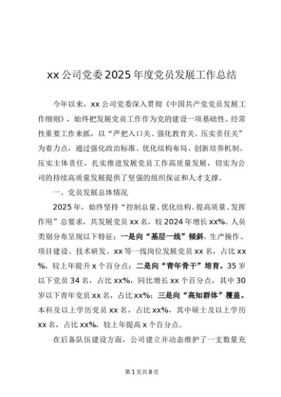 / 党建原创:20250120 xx公司党委2025年度党员发展工作总结