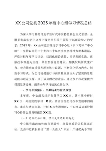 / 党建原创:20250119 XX公司党委2025年度中心组学习情况总结