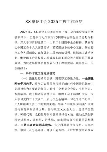 / 党建原创:20250114 XX单位工会2025年度工作总结