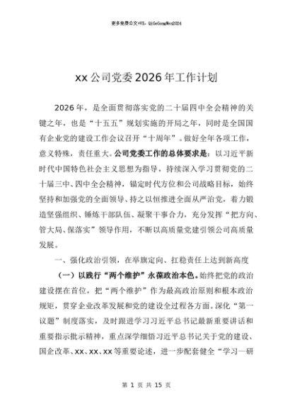 / 党建原创:20250139 xx公司党委2026年工作计划