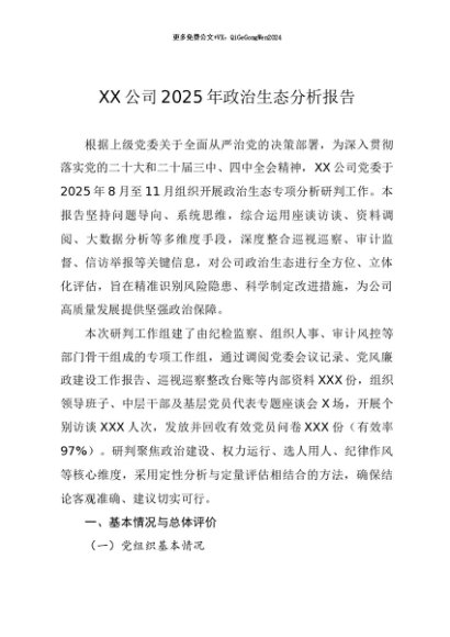 / 党建原创:20250132 XX公司2025年政治生态分析报告
