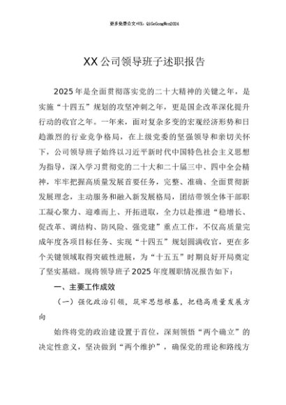 / 党建原创:20250135 XX公司领导班子述职报告
