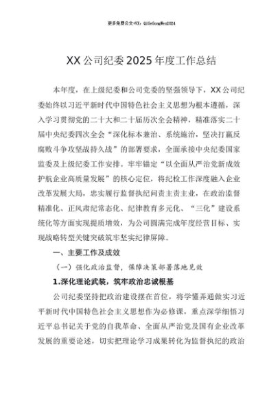 / 党建原创:20250124 XX公司纪委2025年工作总结