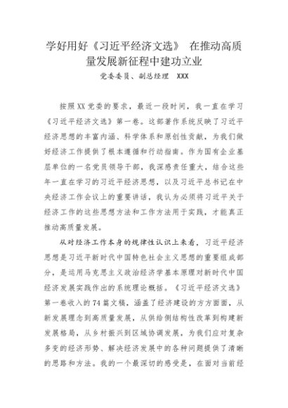 / 党建原创:20250078 《习近平经济文选》第一卷学习体会