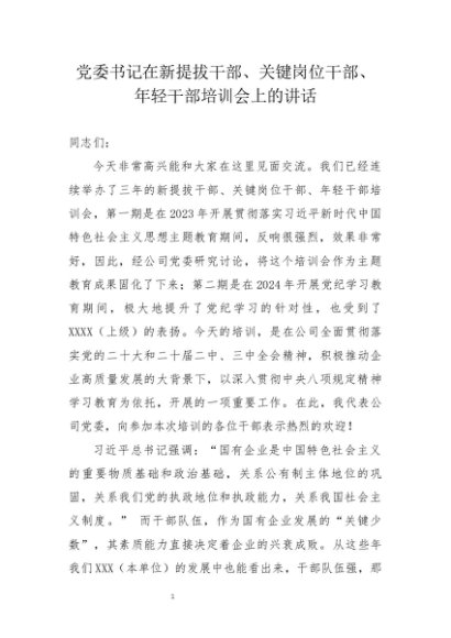 / 党建原创:20250072 党委书记在新提拔干部、关键岗位干部、年轻干部培训会上的讲话