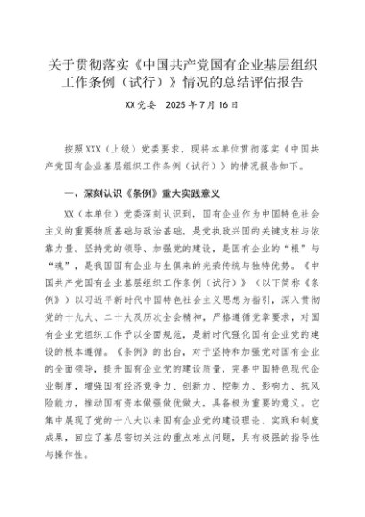 / 党建原创:20250079 关于贯彻落实《中国共产党国有企业基层组织工作条例(试行)》情况的总结