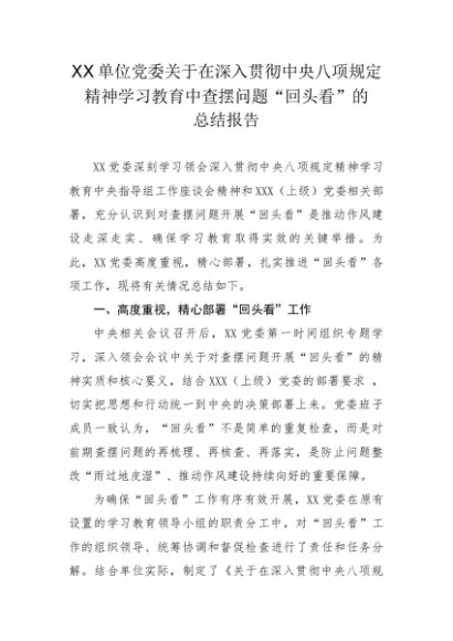/ 党建原创:20250077 单位党委关于查摆问题“回头看”的总结报告