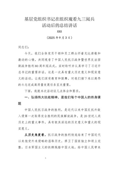 / 党建原创:20250087 基层党组织书记在组织观看九三阅兵活动后的总结讲话