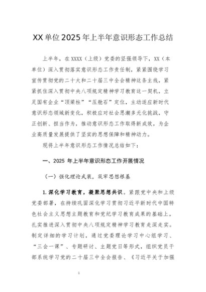 / 党建原创:20250058 XX单位2025年上半年意识形态工作总结