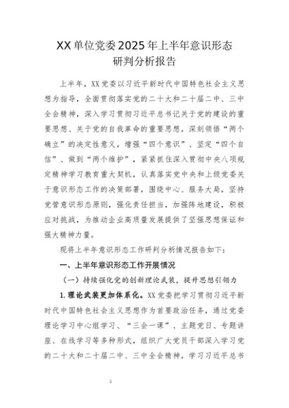 / 党建原创:20250069 XX单位党委2025年上半年意识形态研判分析报告