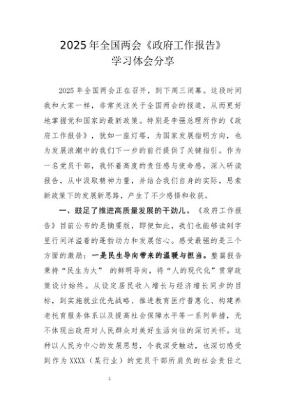 / 党建原创:20250027 基层党员干部学习2025年全国两会精神之《政府工作报告》学习体会