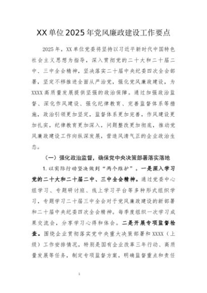 / 党建原创:20250026 XX单位2025年党风廉政建设工作要点