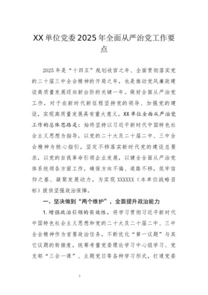 / 党建原创:20250033 XX单位党委2025年全面从严治党工作要点