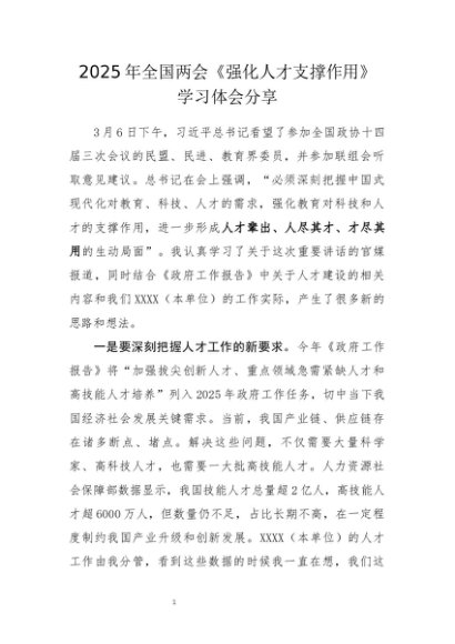 / 党建原创:20250028 基层党员干部学习2025年全国两会精神之《强化人才支撑作用》学习体会