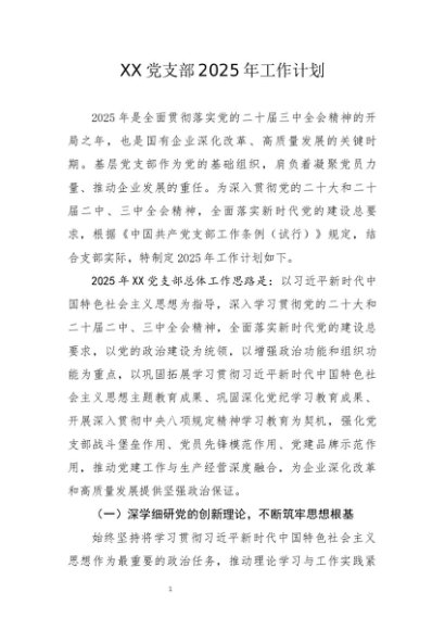 / 党建原创:20250035 XX党支部2025年工作计划