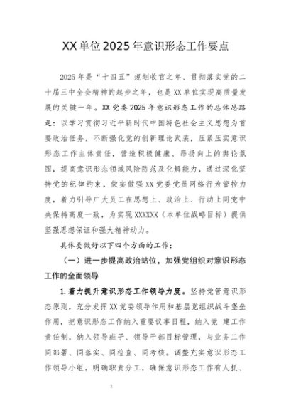 / 党建原创:20250023 XX单位2025年意识形态工作要点