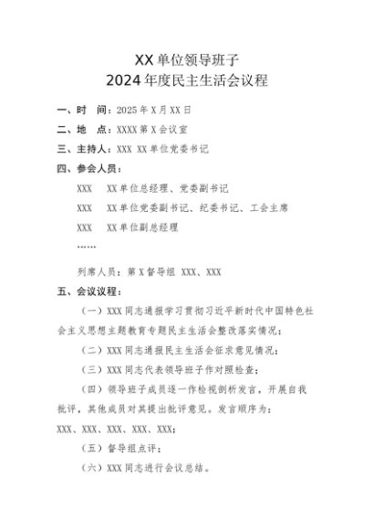 党建原创:20250001 XX单位2024年度民主生活会督导组长点评意见