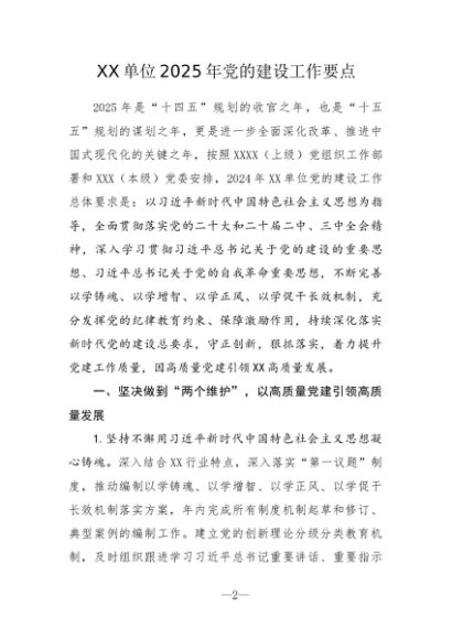 / 党建原创:20250016 XX单位2025年党的建设工作要点
