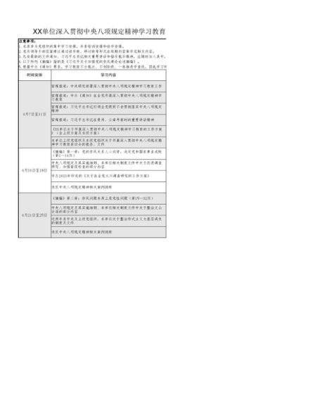 / 党建原创:20250040 XX单位深入贯彻中央八项规定精神学习教育之学习研讨计划安排