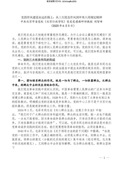 / 党课讲稿:20250605刘智峰:党的作风建设永远在路上:从三大优良作风到中央八项规定精神