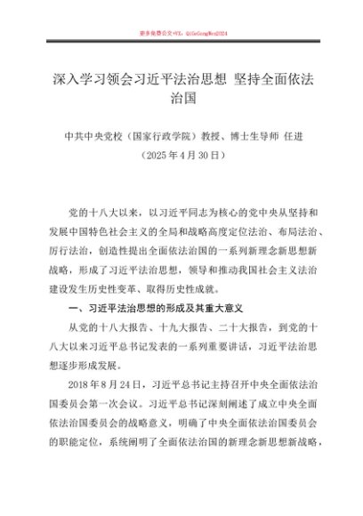/ 党课讲稿:20250430深入学习领会习近平法治思想 坚持全面依法治国——中共中央党校(国家行政学院)教授、博士生导师 任进