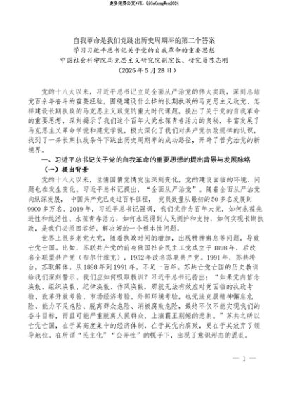 党课讲稿:20250528自我革命是我们党跳出历史周期率的第二个答案学习习近平总书记关于党的自我革命的重要思想——中国社会科学院马克思主义研究院副院长陈志刚