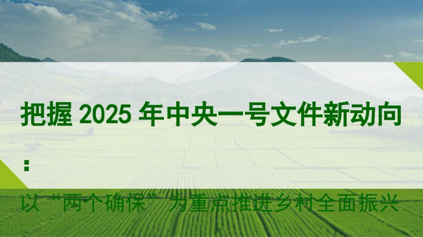 党课讲稿:20250328把握2025年中央一号文件新动向: 以“两个确保”为重点推进乡村全面振兴——中共中央党校(国家行政学院)教授徐祥临