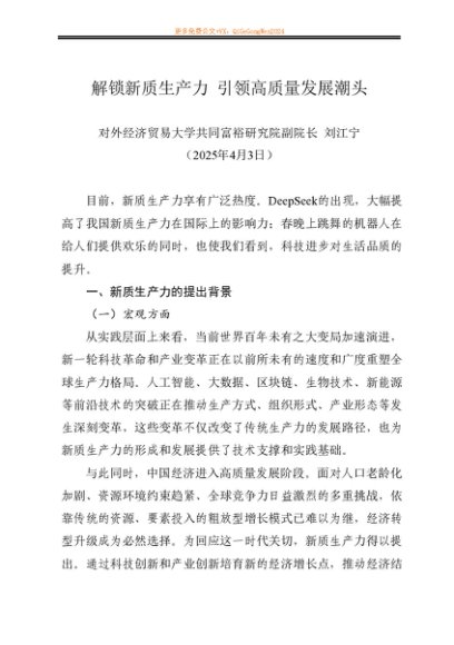 / 党课讲稿:20250403解锁新质生产力 引领高质量发展潮头——对外经济贸易大学共同富裕研究院副院长 刘江宁
