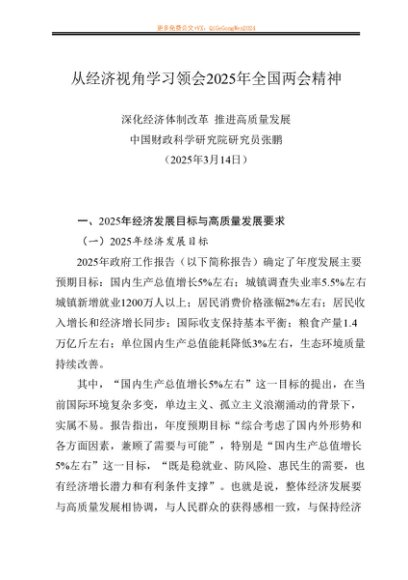 党课讲稿:20250314从经济视角学习领会2025年全国两会精神——中国财政科学研究院研究员张鹏