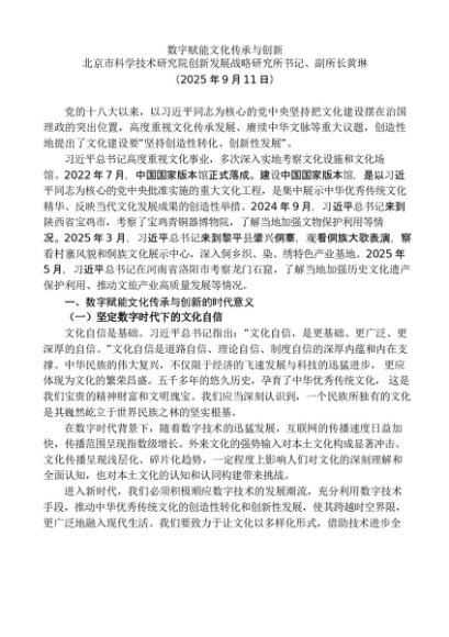 / 党课讲稿:20250911黄琳:数字赋能文化传承与创新