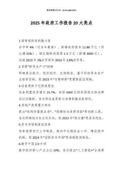/ 党课讲稿:20250310关于2025年政府工作报告20大亮点极简板