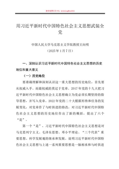 / 党课讲稿:20250107用习近平新时代中国特色社会主义思想武装全党——中国人民大学马克思主义学院教授王向明