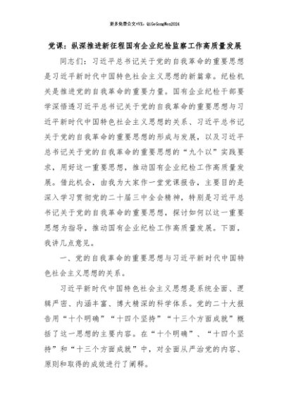 / 党课讲稿:20241127纵深推进新征程国有企业纪检监察工作高质量发展(结合自我革命)