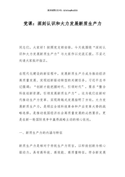 / 党课讲稿:20241127深刻认识和大力发展新质生产力