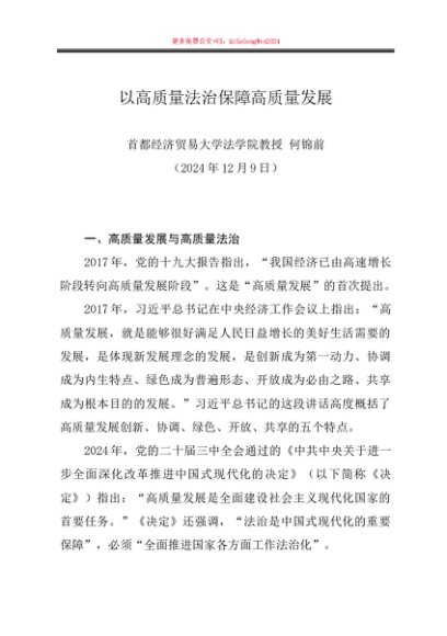 / 党课讲稿:20241209以高质量法治保障高质量发展——首都经济贸易大学法学院教授 何锦前