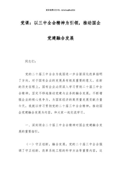 / 党课讲稿:20241127以三中全会精神为引领,推动国企党建融合发展