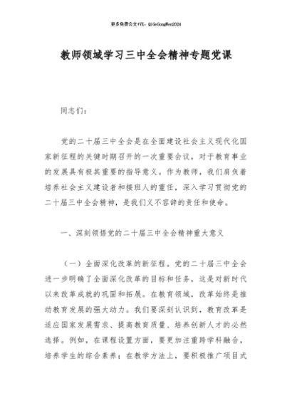 / 党课讲稿:20241127教师领域学习三中全会精神专题党课