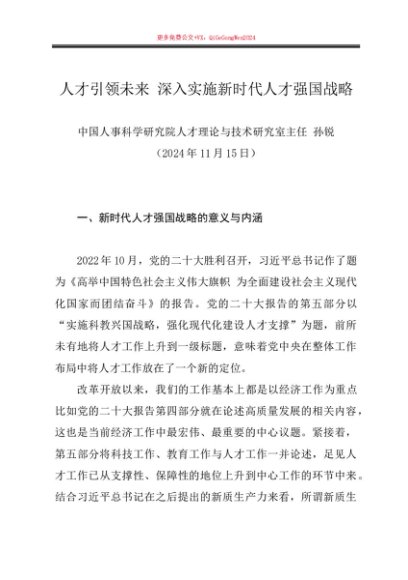 / 党课讲稿:20241115人才引领未来 深入实施新时代人才强国战略——中国人事科学研究院人才理论与技术研究室主任 孙锐