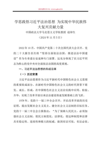 / 党课讲稿:20241105学思践悟习近平法治思想 为实现中华民族伟大复兴贡献力量——中国政法大学马克思主义学院 赵卯生
