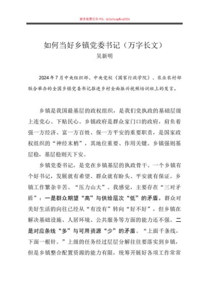 / 党课讲稿:20241030如何当好乡镇党委书记(万字长文,好文推荐)——吴新明