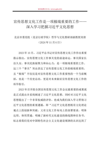 党课讲稿:20241106宣传思想文化工作是一项极端重要的工作——深入学习把握习近平文化思想——北京市委党校哲学与文化教研部副教授龙倩