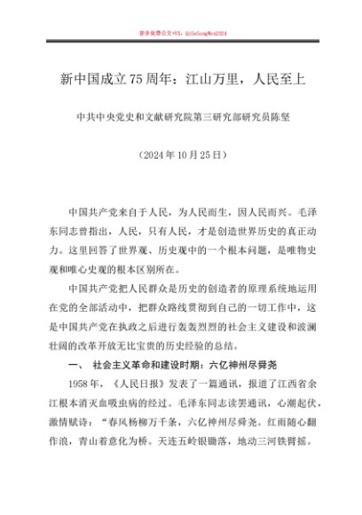 / 党课讲稿:20241025新中国成立75周年伟大成就回顾(群众路线、中国特色社会主义制度)——中央党史和文献研究院陈坚