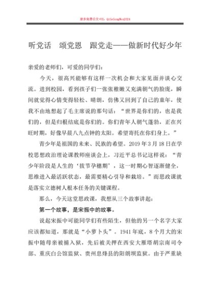 / 党课讲稿:20241017给小学生讲的思政课:听党话 颂党恩 跟党走——做新时代好少年